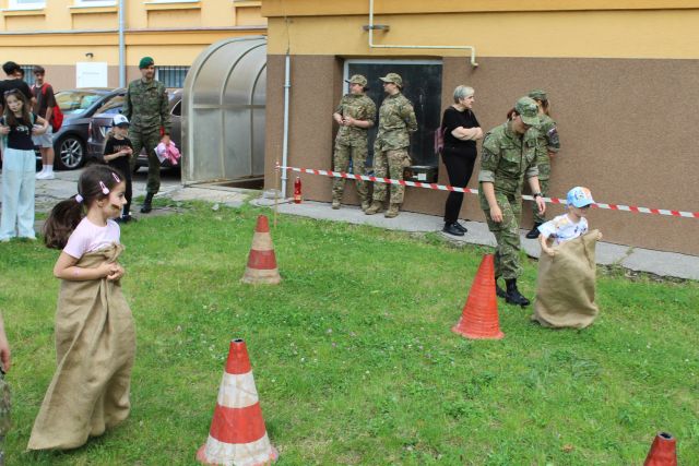 Deň otvorených dverí v trebišovskej posádke vo „Veľkom“ Dňa 2. júna sa v trebišovských kasárňach konal „Deň otvorených dverí“. Na predmetný deň sa príslušníci Trebišovských útvarov už dlho pripravovali. Tento výnimočný deň si deti aj dospelý návštevníci naplno užili. Nemohla chýbať statická ukážka zbraní, lanová dráha, ukážka mínového poľa, maľovanie na tvár, ukážka prvej pomoci, ako aj skákanie vo vreci. Regrutačnou skupinou z Košíc bola zabezpečená informovanosť, pre tých, ktorý sa rozhodnú vstúpiť do našich radov. Medzi najväčšie atrakcie patrili tanky ako Leopard 2A4, T-72 a bojové vozidlo BVP-1. Predstavili sa aj ostatné zložky, ako psovodi vojenskej polície, príslušníci PZ SR a Hasičský a záchranný zbor SR. Chlapci zo Spojenej školy Sečovce, s ktorou má trebišovský útvar dlhodobú spoluprácu sa predstavili skvelou ukážkou boja z blízka. Počet návštevníkov, ktorý prekročili brány útvaru presahoval vyše 2500 osôb, čo naznačuje veľký záujem o naše povolanie.