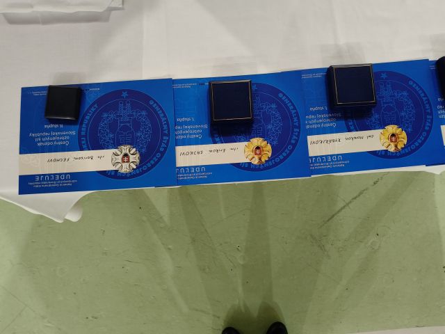 Slávnostný vojenský ceremoniál pokračoval vyhlásením rozkazov Náčelníka Generálneho štábu Ozbrojených síl SR o udelení vojenských vyznamenaní a mimoriadnych ocenení pri príležitosti Dňa ozbrojených síl SR a Dňa hrdinov Karpatsko-duklianskej operácie.