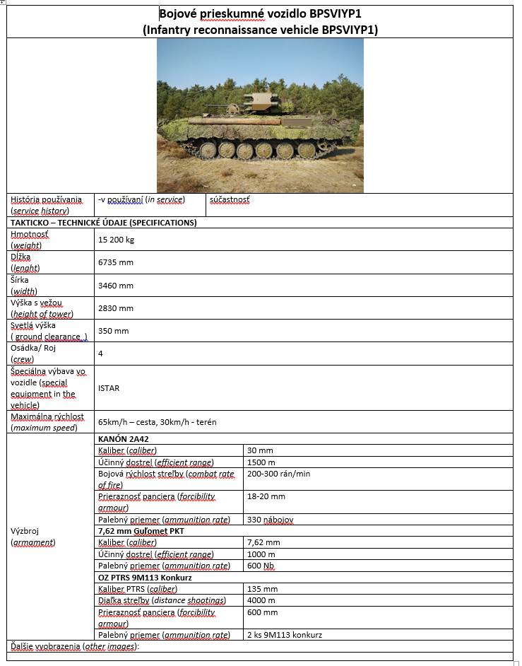 Bojové prieskumné vozidlo BPSVIYP1 (Infantry reconnaissance vehicle BPSVIYP1) |
